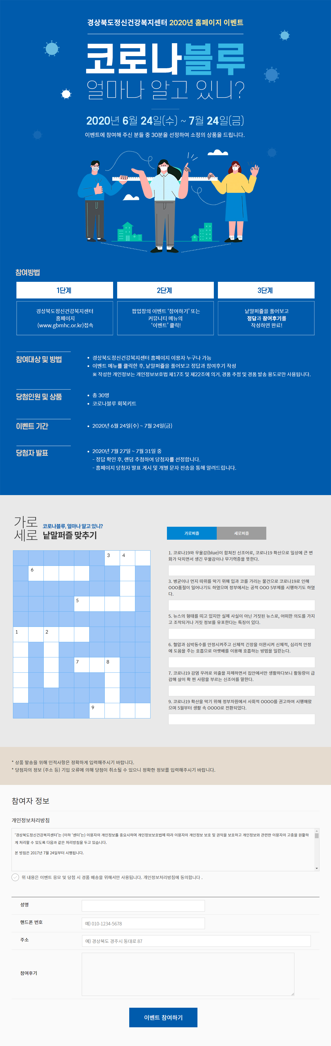 코로나19 검사 후 유증상자가 아닌 결과가 나왔을 때는 14일간 OOOO 대상이 되어 자신의 집에서 스스로 외출을 금하고 외부 접촉을 삼가는 경우를 말한다. 정답입력은 퍼즐 해당 칸을 클릭(터치)하여 입력합니다.